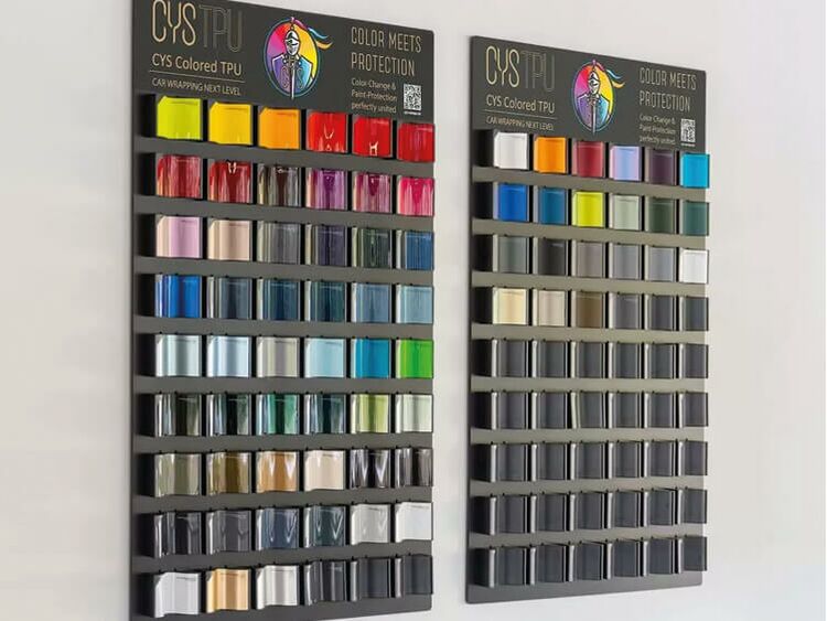 Das CYS-Colorboard mit Folienhaltern bietet Platz für 54 Farben und hat die Maße 120 x 80 cm.