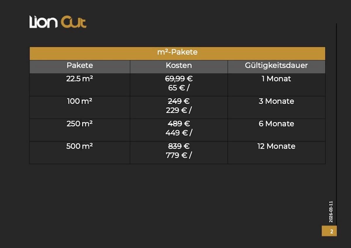 Der Verkauf, die Abrechung und der technische Service erfolgt ausschließlich über LionCut.